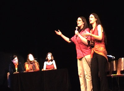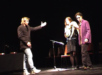 Spectacle parodique pour comédiens-chanteurs, dispositif électroacoustique et vidéo